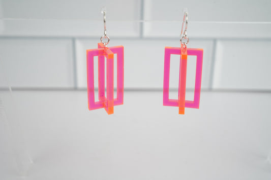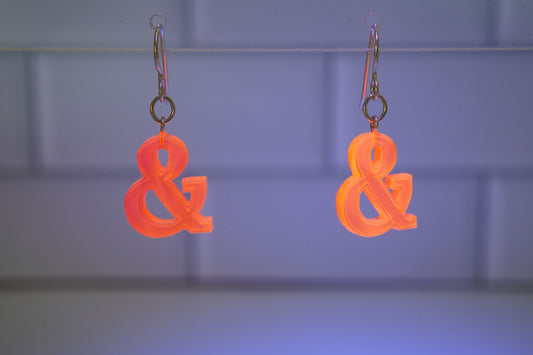 Ampersand Dangle Earrings-Neon Pink