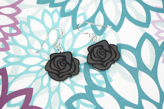 Black Rose Dangle Earrings