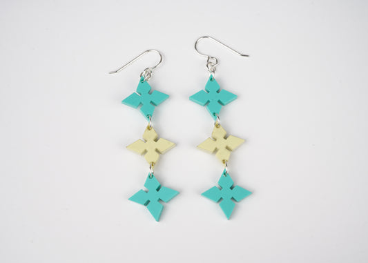 Pointed Diamond Dangle Earrings- Teal and Pale Yellow