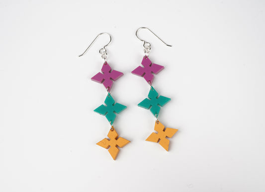 Pointed Diamond Dangle Earrings- Mardi Gras colors