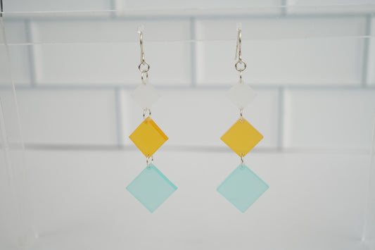 Square Diamond Dangle Earrings- Iridescent
