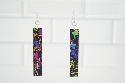 Neon Splatter Rectangular Dangle Earrings