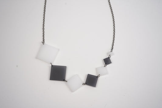 Square Diamond Necklace - Black and White