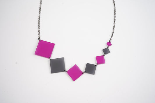 Square Diamond Necklace - Black and Magenta